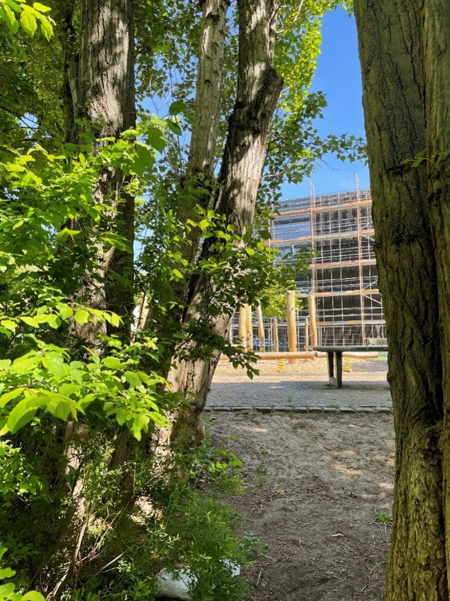 In 2025 wurde bereits parallel zur Baumaßnahme des Ergänzungsbaus die Planung für den neuen Schulhof konkretisiert. Es ist geplant, dass bis Ende 2025 einen Entwurf der Freianlagen vorliegt, sodass die Maßnahmen direkt im Anschluss im Zeitraum 2026 bis 2027 umgesetzt werden können, damit die Schülerinnen und Schüler die Flächen so schnell wie möglich wieder nutzen können.