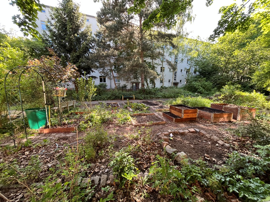 Ziel dieser Maßnahme ist es, den Schulhof bedarfsgerecht umzubauen, die bestehenden Ruhe- und Aufenthaltsbereiche neu zu entwickeln, den Anlieferverkehr für die mobilitätseingeschränkte Schülerschaft auf dem Schulhof verkehrssicher zu organisieren und die Flächen neu zu bepflanzen und auszustatten. Dazu gehören unter anderem neue Bäume und artenreiche Vegetationsflächen, sowie bedarfsgerecht Spielelemente. Die Maßnahmen verbessern die Außenflächen im Hinblick auf die geforderten Bedarfe und wirken sich damit positiv auf die Aufenthaltsqualität und Nutzbarkeit der Schüler- und Lehrerschaft aus. Ebenso fördern sie die Sicherheit und Biodiversität. Die neue dezentrale Regenwasserversickerung auf dem Schulhof ist eine Anpassung an den Klimawandel und wird auch einen positiven Einfluss auf das Mikroklima haben.